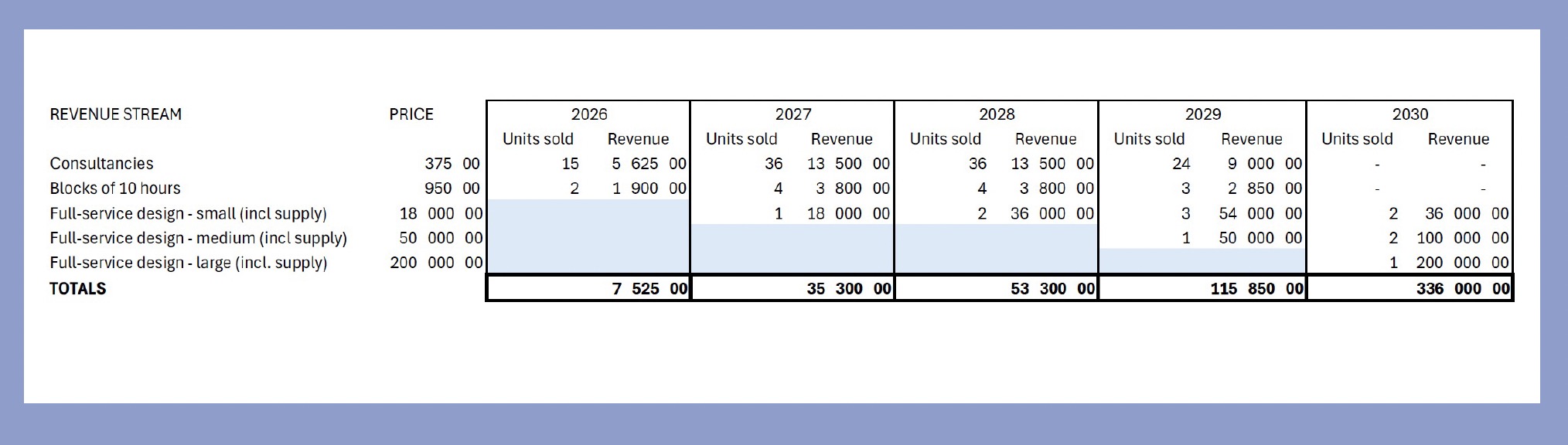 When designers sketch out how income might flow over time (when they take a moment to forecast the revenues they want each of our services to generate each year), something important happens: they realise growth is rarely random. If you plan for it, you're more likely to make it happen.