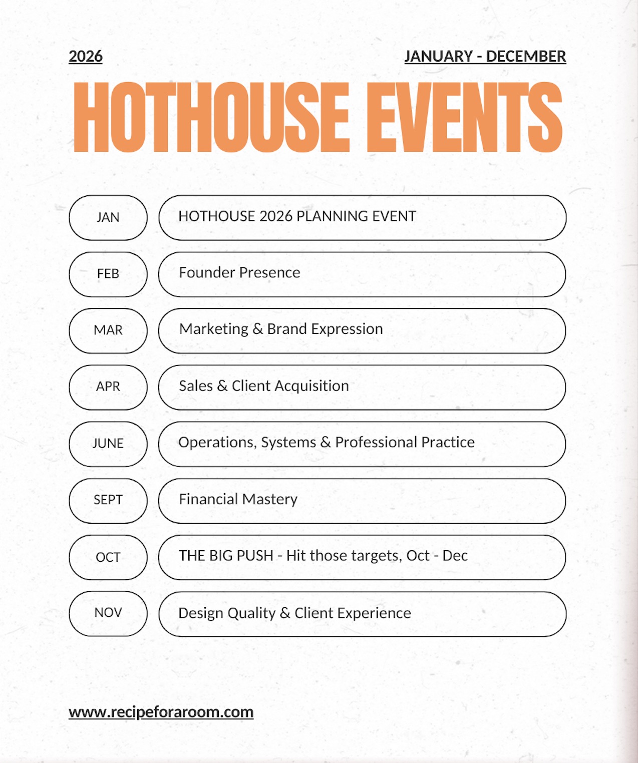 4. The Hothouse 2026 Calendar - Business circuit training for interior designers