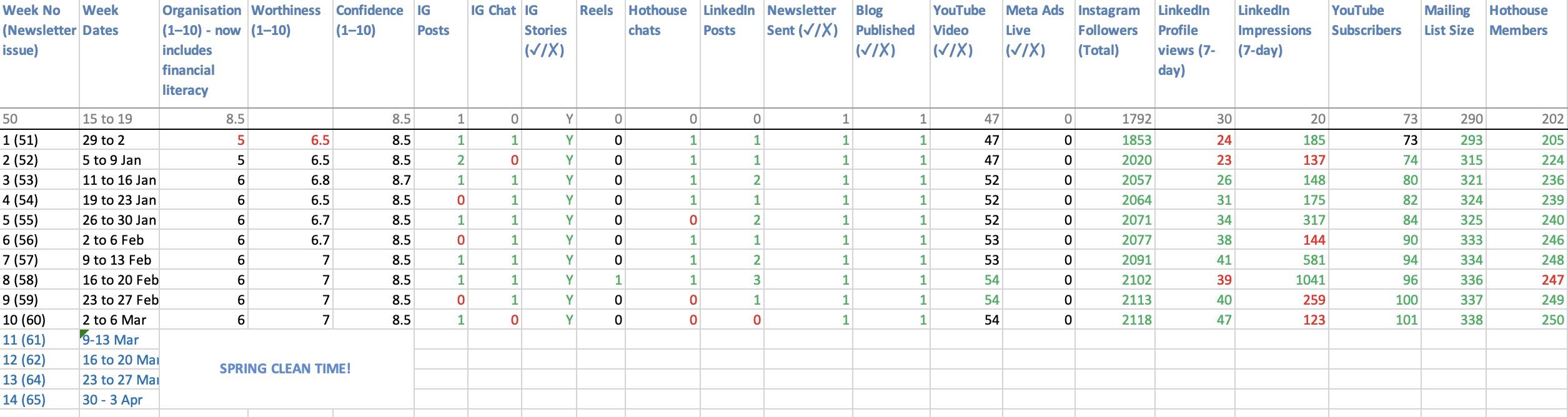 We're into the final month of Q1, my performance is slipping, my data sheet is getting redder and redder - it has been a busy time personally, and with logistical issues around flight cancellations. No time like the present for a SPRING CLEAN! Want to join in?