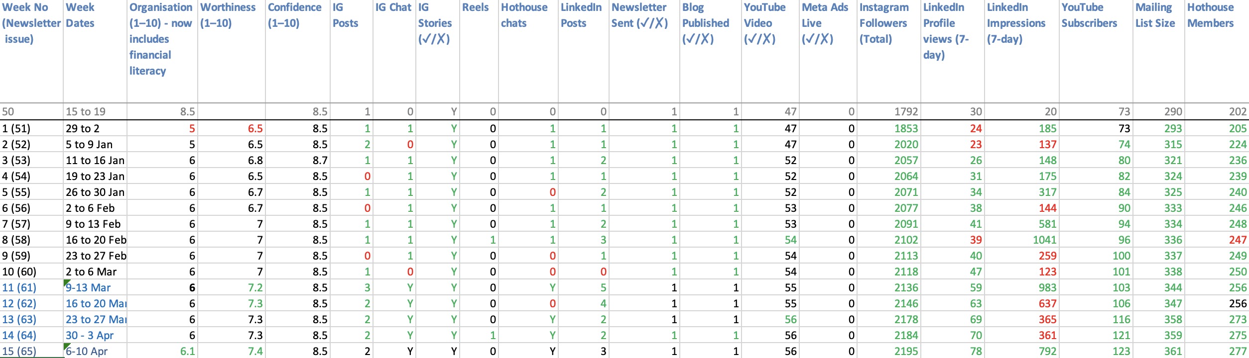 Today I’m also sharing two charts that don’t normally feature, but both are good illustrations of the power of consistent behaviour. First, a graph of my weekly website views: