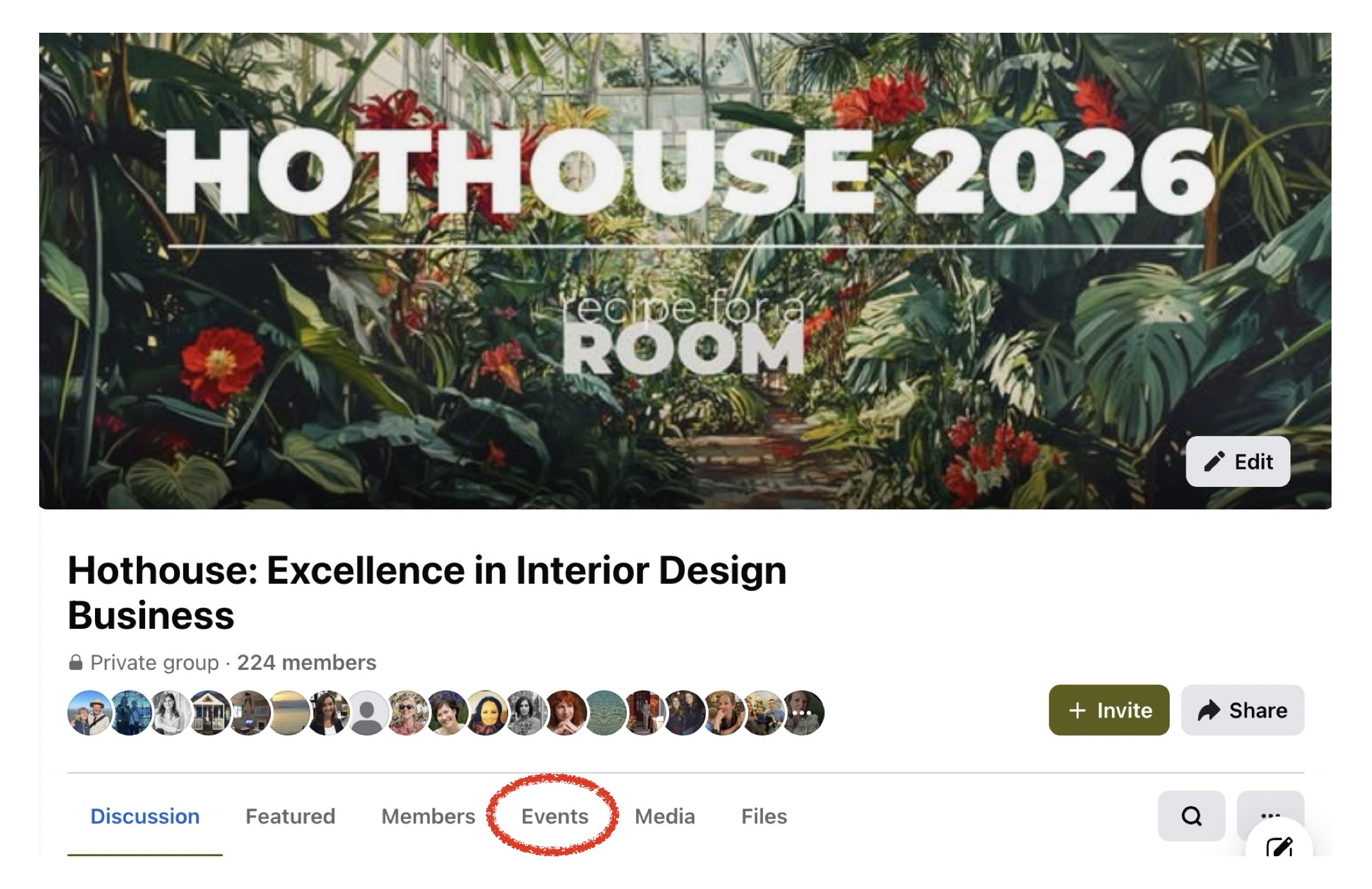 This is the weekly newsletter for the Hothouse group, and the best place to keep up with the free support on offer for your interior design business in the next week or two.