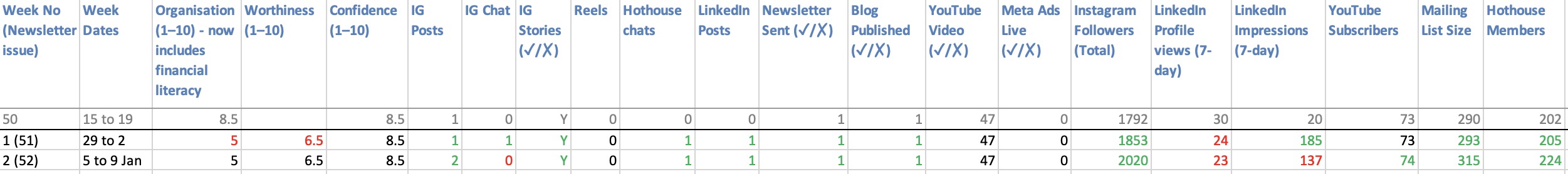 Iām still getting to grips with my new dashboard, above, and spending a lot of time inside dashboards more generally. Iām currently working closely with my Boardroom Bespoke clients to design their 2026 dashboards: deciding what really deserves to be measured this year, and which metrics will most directly support their growth, confidence, and commercial resilience.