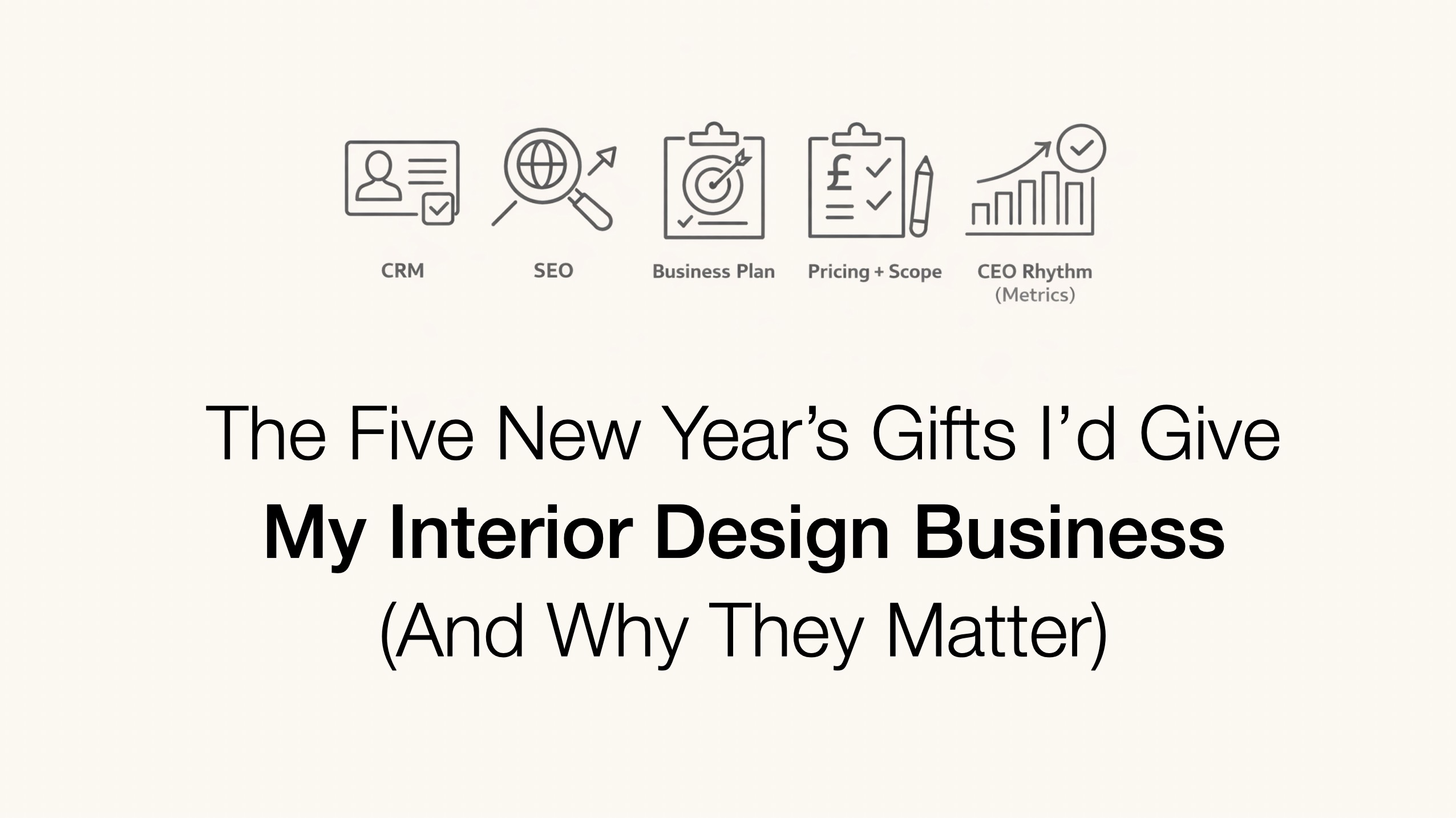 Most interior designers donāt need a rebrand, a new logo, or a grand reinvention in January, they need a few boring, powerful upgrades that make everything run better. In this week's blog I wrote about the five New Yearās gifts Iād give my interior design business (CRM, SEO, planning, pricing, and a weekly CEO rhythm), and exactly how to put each one in place. Read it here.