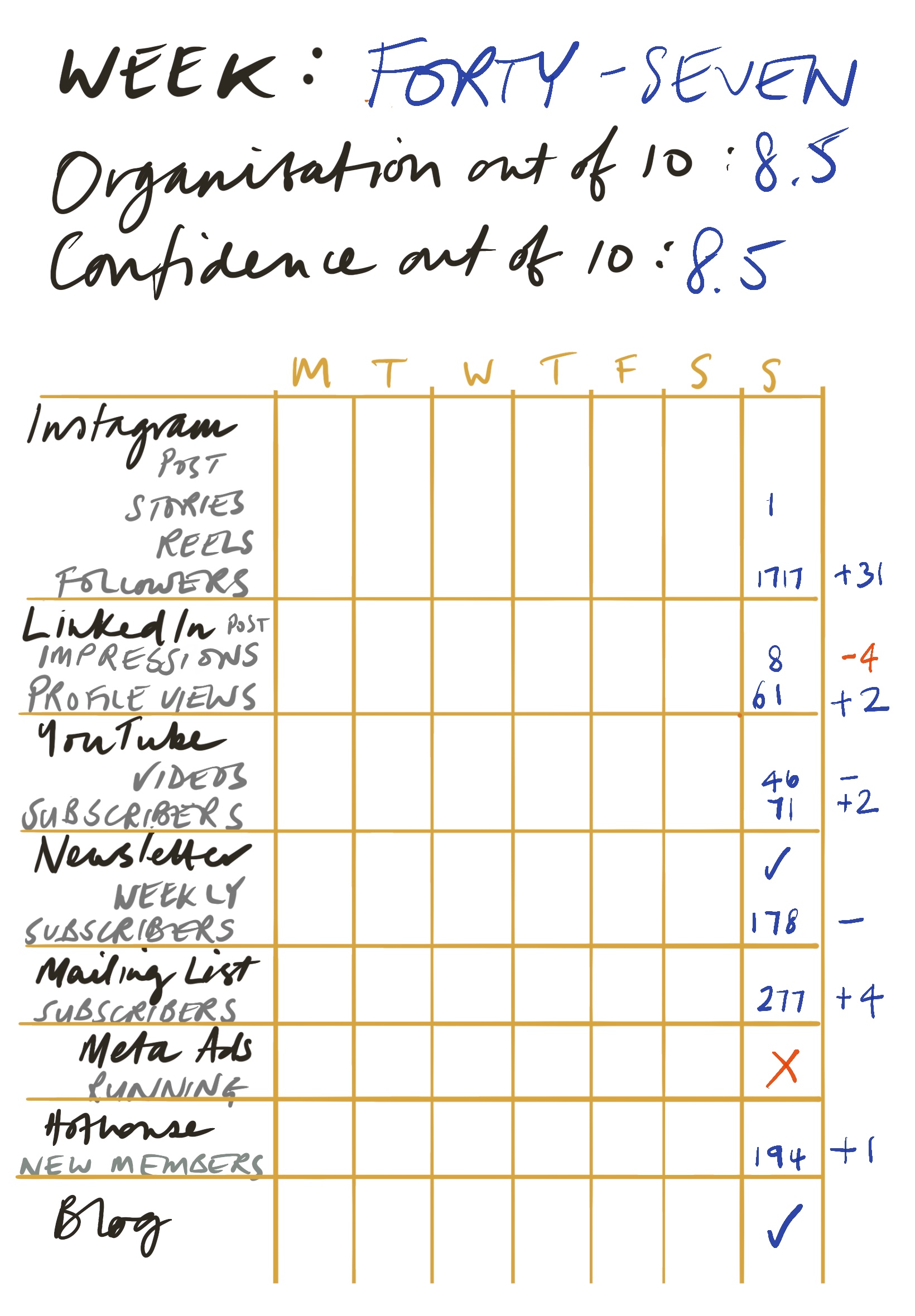Normal pace resumes next week… yes, I am going to restart those Meta ads....just in time for sending the final reminder to participants in THE BIG PUSH!